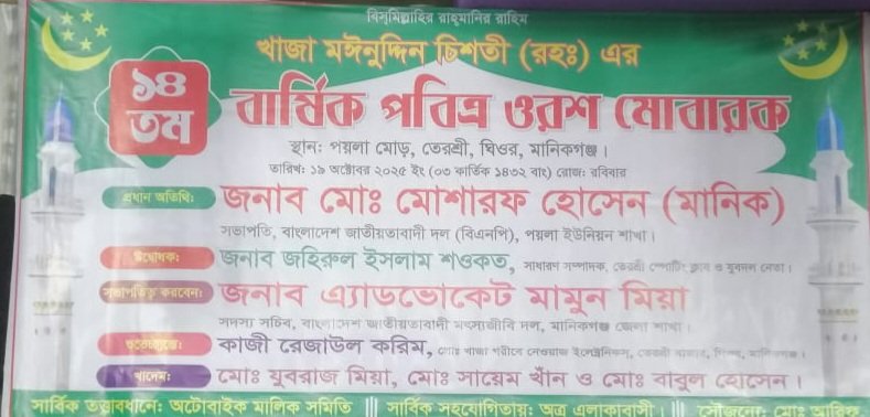 ভক্তি, শ্রদ্ধা ও ধর্মীয় ভাবগাম্ভীর্যের মধ্য দিয়ে মানিকগঞ্জের ঘিওর উপজেলার পয়লা মোড় এলাকায় অনুষ্ঠিত হয়েছে খাজা মঈনুদ্দিন চিশতী (রহঃ)-এর ১৪তম