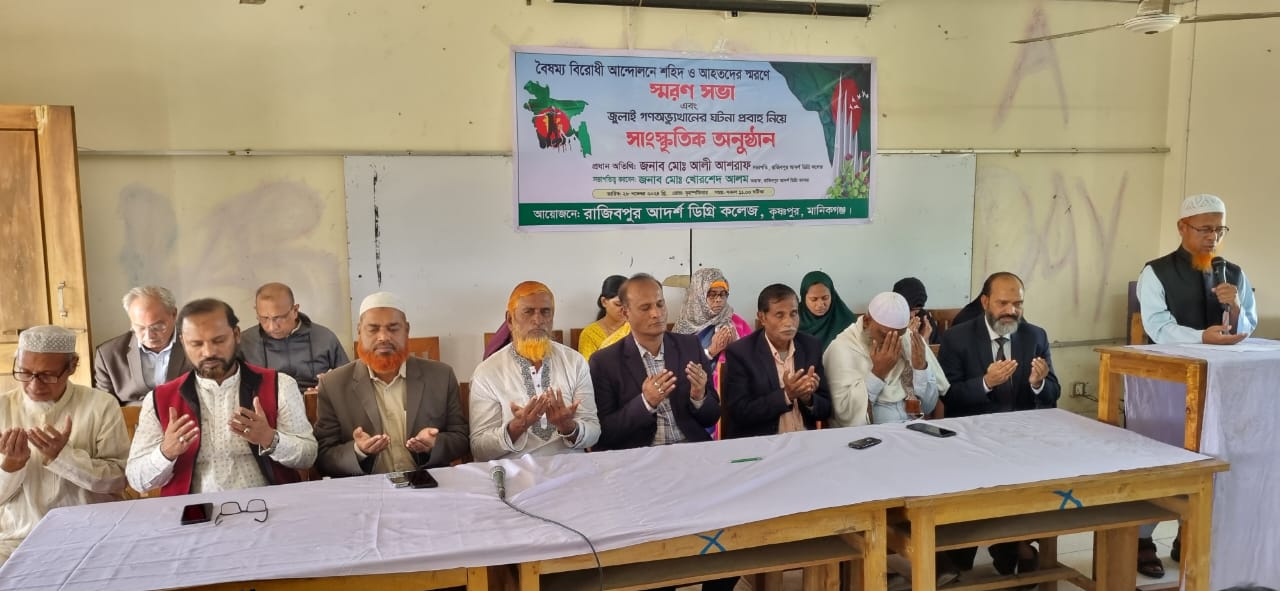 মানিকগঞ্জ সদর উপজেলার রাজিবপুর আদর্শ ডিগ্রি কলেজে বৈষম্য বিরোধী আন্দোলনে শহিদ ও আহতদের স্মরণে স্মরণ সভা এবং গণঅভ্যুত্থানের ঘটনা প্রবাহ