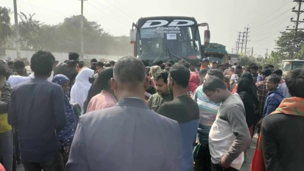 স্থানীয়রা ‘আমাদের রাস্তায় এখন দিবি,রাস্তায় রাস্তা চাই , রাস্তা ছাড়া উপায় নাই’ এই স্লোগানে ঢাকা আরিচা মহাসড়ক অবরোধ করে ।