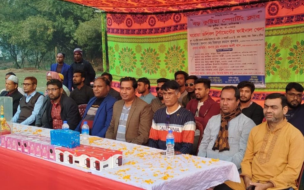 মানিকগঞ্জের ঘিওর উপজেলার বড় কুষ্টিয়া স্পোর্টিং ক্লাবের উদ্যোগে আয়োজন করা ভলিবল টুর্নামেন্টের উত্তেজনাপূর্ণ ফাইনাল ম্যাচ অনুষ্ঠিত হয়েছে।
